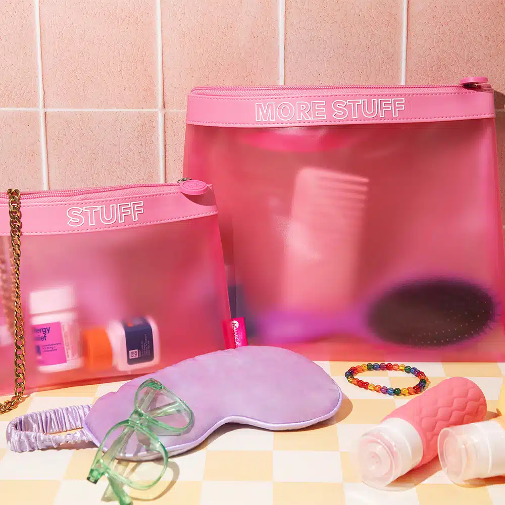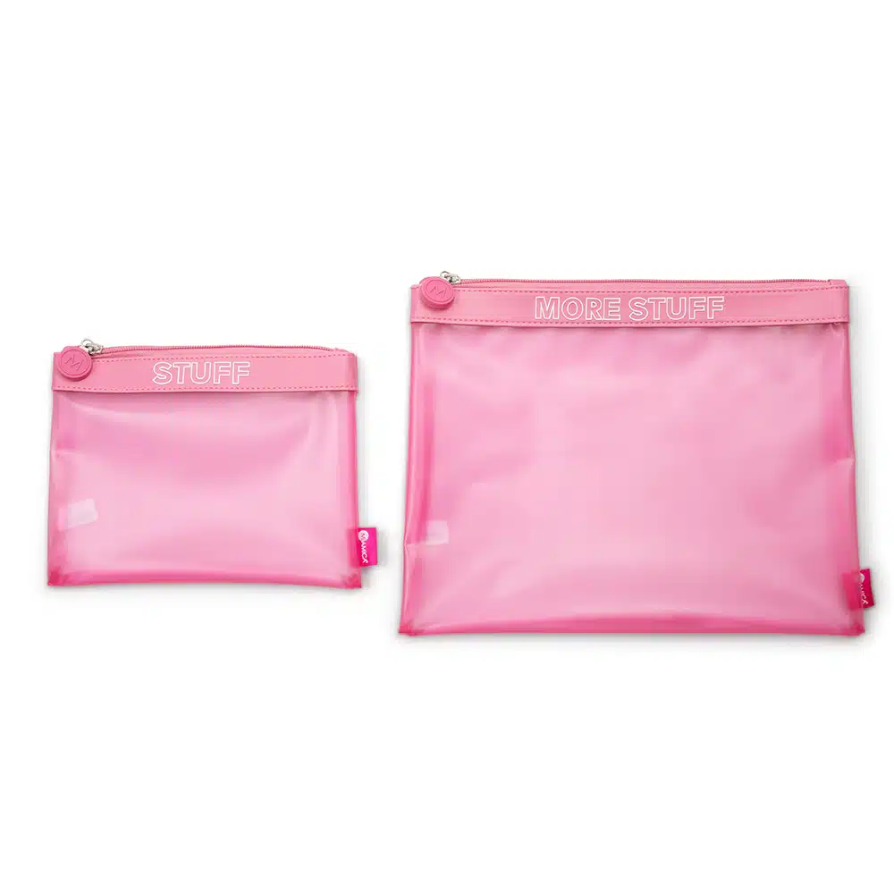 Calling all lovers of simple organization! With this Miamica two piece set of bright pink, soft touch pouches it’s easy to keep your essentials neatly stored and within reach. Whether you’re transporting beauty items, tech accessories, or daily must-haves, this stylish set makes staying organized effortless.