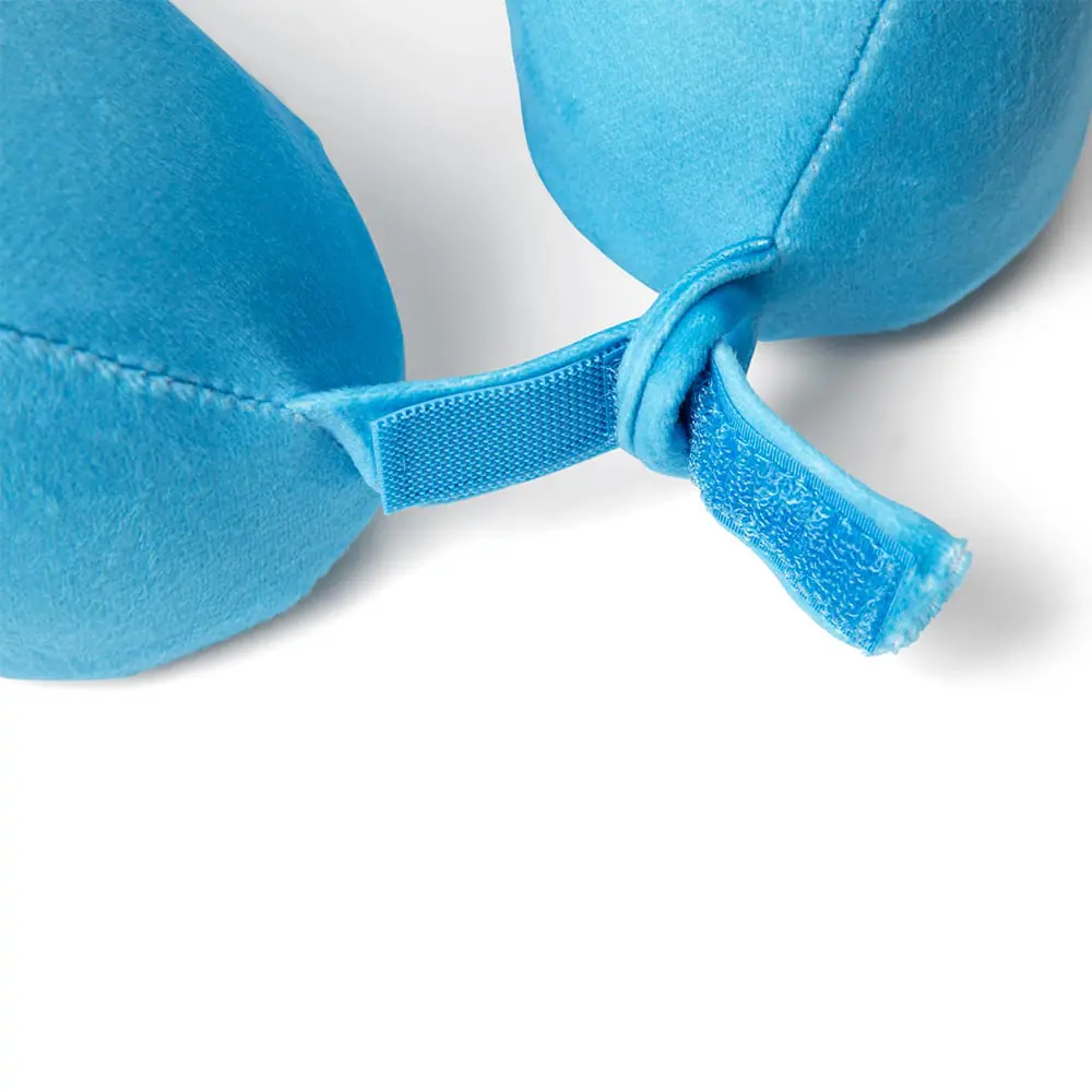 Arrive rested to your destination with our blue ergonomic travel neck pillow! The soft, machine-washable exterior will keep you cozy, while the ultra-plush memory foam core will provide the support you need, contouring to your neck and head.