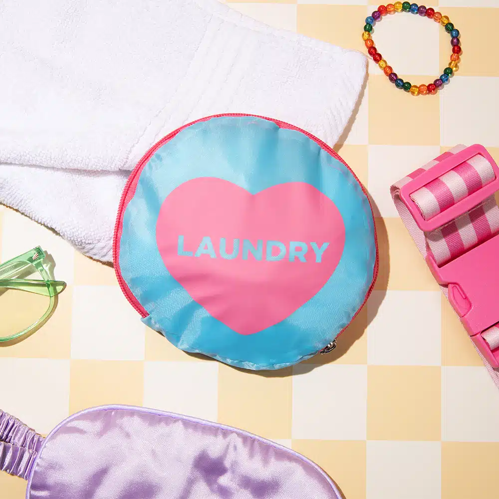 Nobody loves dirty laundry…but you will love our heart travel laundry bag! This compact and lightweight laundry bag is perfect for keeping your dirty clothes separated from the clean contents of your suitcase or gym bag.